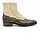 The Liam-Brown/Beige boots combine rich brown calfskin with textured beige pebble grain calfskin for a striking two-tone effect. Featuring a gold button detail and an inside zipper,